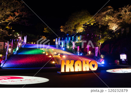 あらかわ遊園の観覧車と水面に映える景観 夕景 夜景 ライトアップ