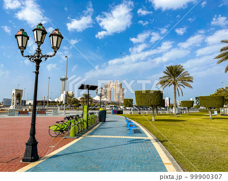 Abu Dhabi Corniche promenade in Al Marina, cycle and pedestrian pathways in United Arab Emirates