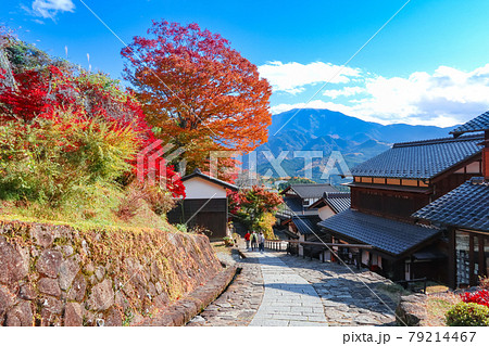 秋の馬籠宿、古い町並み〈岐阜県中津川市〉