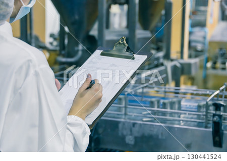 Food hygiene staff worker check test products sterilize quality food factory conveyer belt line