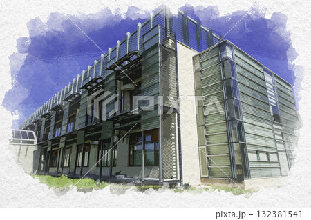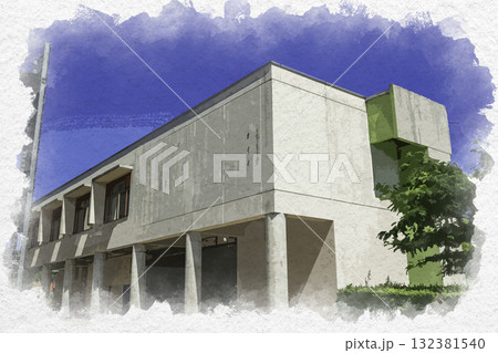 水彩画風 鳥取県衛生環境研究所 鳥取県湯梨浜町