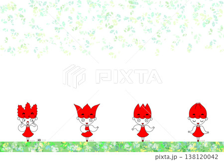少女キャラポストカード - 女の子・サイドステップ・木の葉・若葉