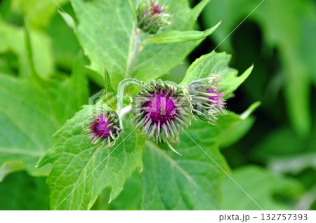 北海道 大雪山縦走 黒岳から層雲峡温泉に下る縦走路に咲くエゾアザミ