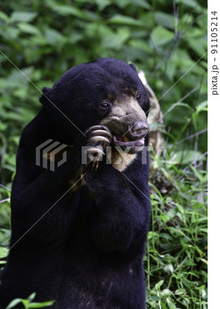 マレーシアやタイの国立公園のジャングルに住む、愛きょうのあるマレーグマ