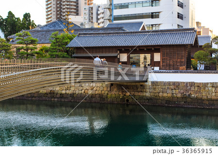 長崎県長崎市 出島と長崎市の街並み 出島表門橋