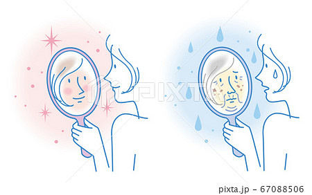 鏡 ミラー 若さと衰え 女性 モノクロ イラスト