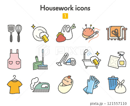 掃除 家族 親子 子供 掃除道具 アイコン イラストセット