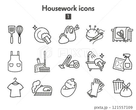 掃除 家族 親子 子供 掃除道具 アイコン イラストセット モノクロ