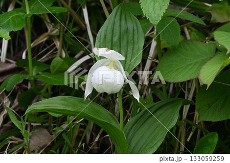 北海道礼文島で見た袋状の唇弁をもつクリーム色の花が綺麗なレブンアツモリ
