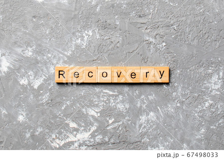 recovery word written on wood block. recovery text on table, concept