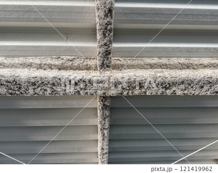 白灰色の亜鉛メッキ鋼板の結晶模様の表面の縦長の背景画像