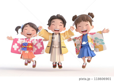 七五三 可愛い3人の子供たち
