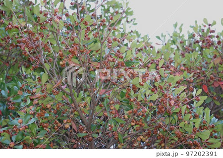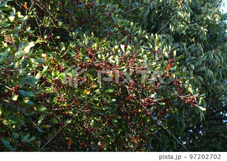 赤い果肉が美しいツルウメモドキの実(冬、十二月)