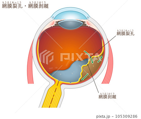 眼球・網膜裂孔・網膜剥離・retinal tear・retinal detachment・イラスト