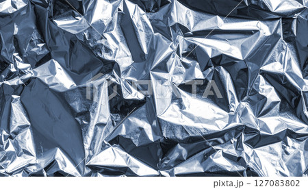 close up crumpled aluminum foil texture background, abstract pattern of tinfoil, copy space