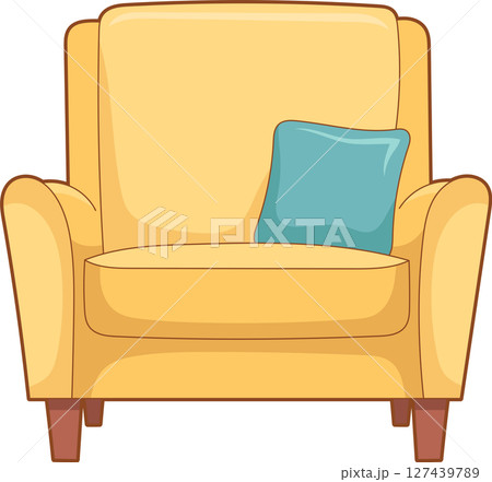 Comfortable yellow cartoon chair with teal cushion for relaxing and reading.