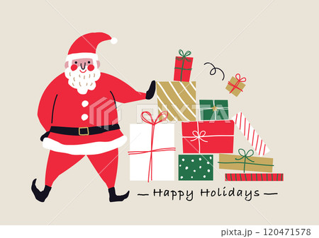 可愛い手描き風のサンタクロースのクリスマスイラスト