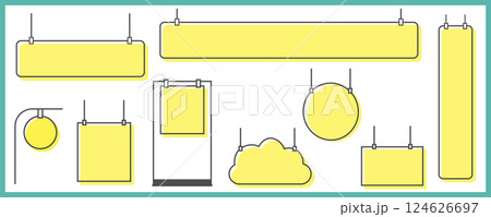 かわいい黄色のハンギングボードの背景イラストセット ベクター テキストなし コピースペース 看板