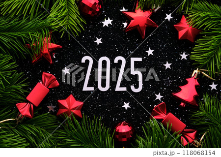 New Year 2025 background. Number of the coming year in Christmas decoration.