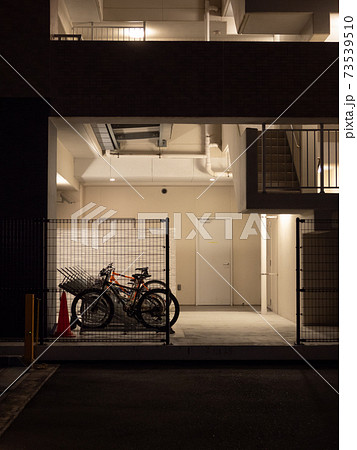 夜のマンションの駐輪場