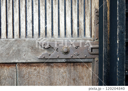 古民家の門戸に設置されている古い鉄製装飾錠前
