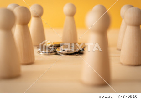 資本主義、お金に群がる人たち|お金と人型のオブジェ