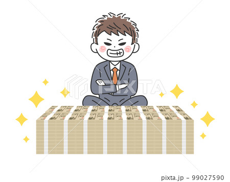 裏金をもらう、スーツを着た、若い男性のイラスト