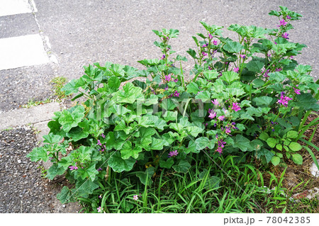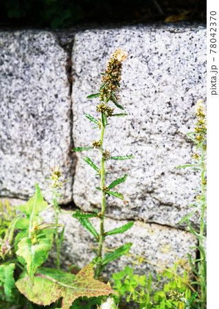 石畳の隙間から成長する雑草のウラジロチチコグサ