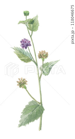 水彩で描いたオランダビユ 花と種