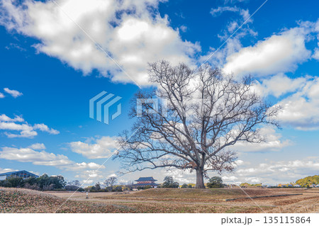 国営平城宮跡歴史公園 葉の落ちた冬枯れの大木 奈良市