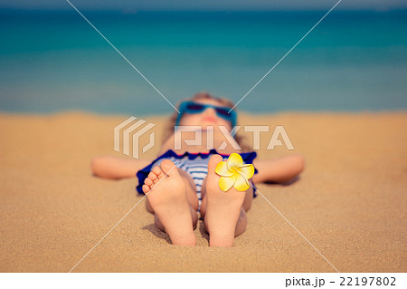 Child relaxing on the beach