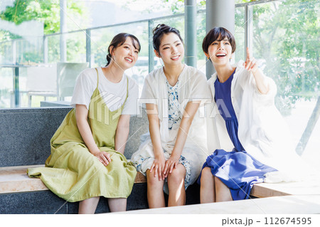 女子旅で足湯を楽しむ若い女性