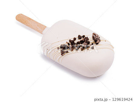 Delicious ice cream treat coated in white chocolate and chocolate crumbs