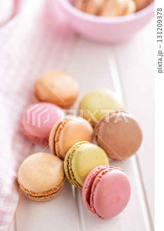 Macarons colorful cookies s in a bowl. Sweet dessert