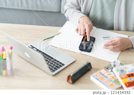 スマホで確定申告をする若い男性 顔無し