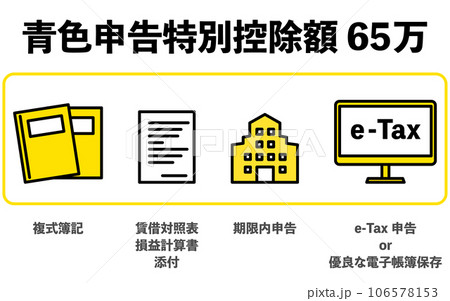 確定申告、青色申告特別控除額65万円の説明イラスト