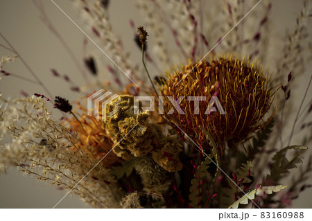 ドライフラワーの花束のクローズアップ
