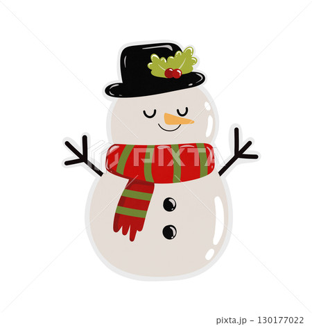 Charming snowman dressed warmly, greeting winter with a peaceful snowy scenery for Christmas joy.
