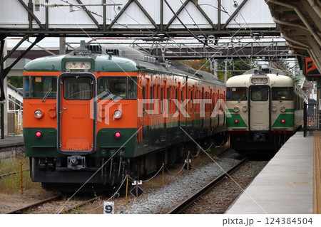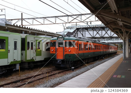 小諸駅に停車中のしなの鉄道115系電車(長野県小諸市)