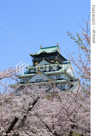 春の大阪城と満開の桜 (大阪府大阪市中央区)