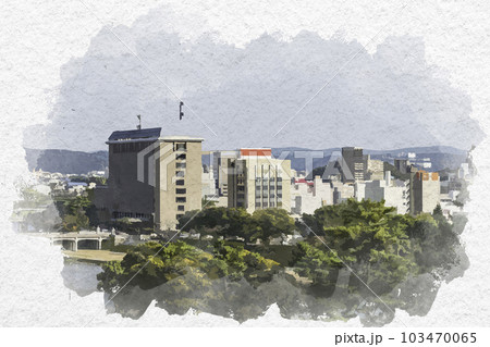 水彩画風 岡崎 愛知県西三河総合庁舎 愛知県岡崎市