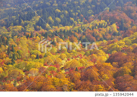 秋の山形県米沢市 紅葉の天元台高原 北望台からの眺望