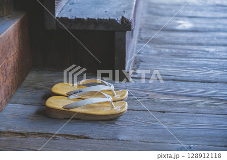 [水間寺]お寺の境内に置かれた下駄