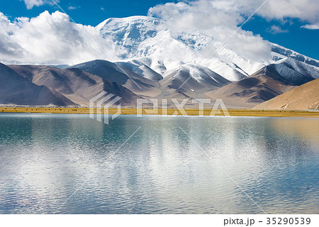 カラクリ湖から見えるムスタグアタ山(7546m) 中国・新疆ウイグル自治区クズルス・キルギス自治州