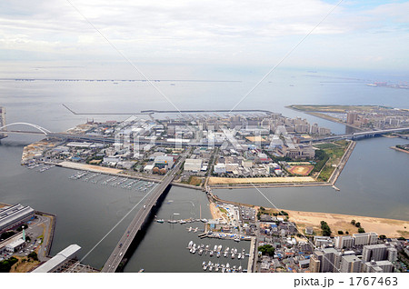 兵庫 西宮市 西宮港 ヨットハーバ(神戸マリーナ)と工場群(西宮大橋から、初夏)