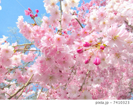 満開の北山の八重紅しだれ桜(西宮市北山緑化植物園)