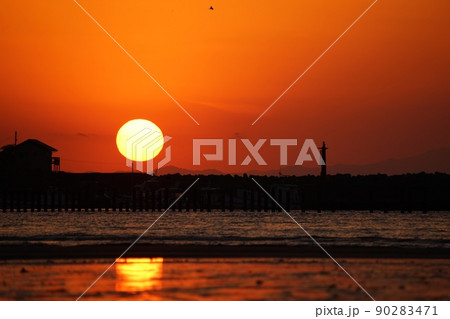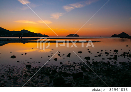 夕暮れの西広海岸 リフレクション 和歌山県有田郡広川町