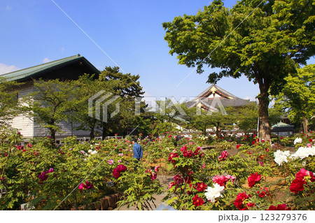 ボタンが咲き誇る春の西新井大師(大本堂と第5ぼたん園)