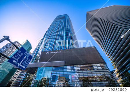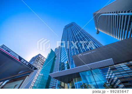 日本の東京都市景観 虎ノ門ヒルズや虎ノ門ヒルズビジネスタワーなどを望む。奥に虎ノ門ヒルズ駅