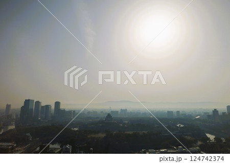 大阪、黄砂、中国からの黄砂、3月、春をつげる黄砂、大阪城、大阪の街に黄砂、黄砂が日本にやってくる